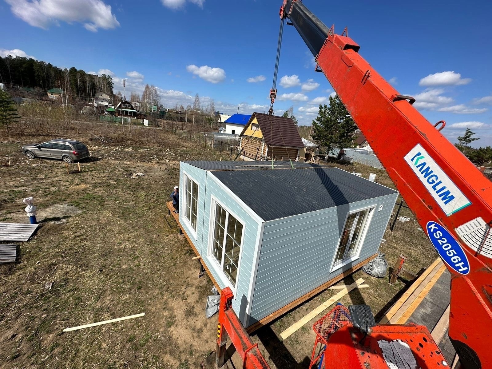 Как выглядит монтаж готового дома на участке ?